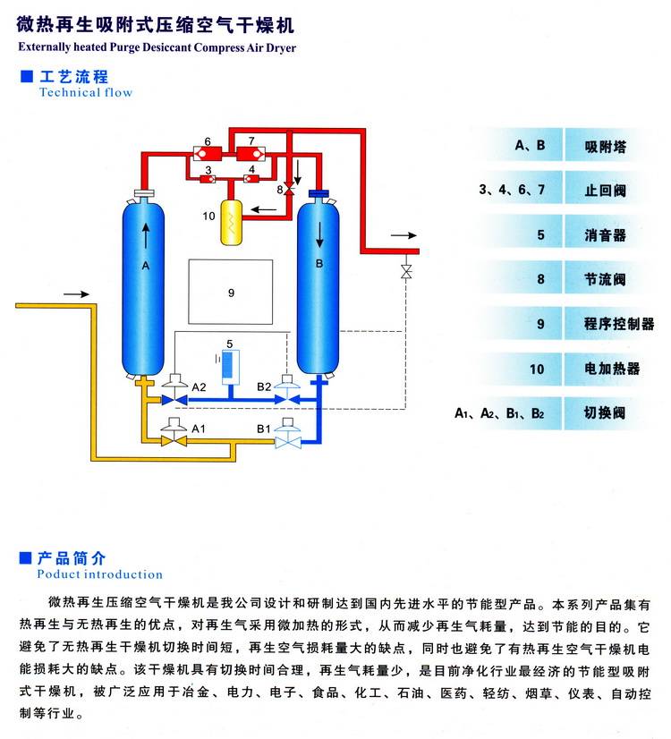 5) 吸附劑充填量極為充裕,大容量的干燥劑床保證了空氣與干燥劑有充足的接觸時間,使干燥劑能充分吸收水份,達到穩定的出口露點。保證出口空氣露點的穩定,除水效果。