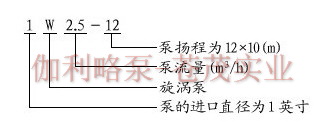 【1W系列直連式單級旋渦泵】型號意義: