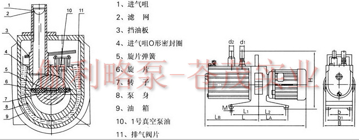 【2XZ型直聯旋片式真空泵】結構圖及安裝尺寸:?