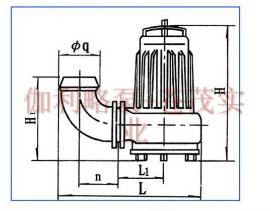 2、在移動使用時,出水軟管可用前面表格規定的標準軟管接頭,接在水泵的出水彎管上,固定使用時,可根據自耦裝置的法蘭標準設置管路;