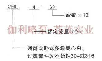 【CHL型臥式輕型不銹鋼多級泵(圓筒式)】型號意義: