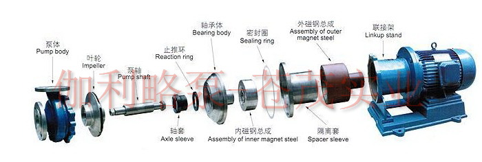 (六)磁力泵正常運行1000小時后,應(yīng)拆檢軸承和端面動環(huán)的磨損情況,并更換不宜再用的易損件。