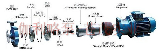 ??? 磁力泵結構緊湊、外形美觀、體積小、噪音低、運行可靠、使用維修方便。可廣泛應用于化工、制藥、石油、電鍍、食品、電影照相洗印、科研機構、國防工業等單位抽送酸、堿液、油類,稀有貴重液、毒液、揮發性液體,以及循環水設備配套、過濾機配套。特別是易漏、易燃、易爆液體的抽送,選用此泵則更為理想。