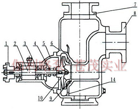 ??? 在一些泵的軸承體底部還設(shè)有冷卻室。當軸承發(fā)熱引起軸承體溫升超過70度時,可在冷卻室處通過任意一只冷卻液管接頭,注人冷卻液循環(huán)冷卻。泵內(nèi)部防止液體由高壓區(qū)向低壓區(qū)泄漏的密封機構(gòu)是前后密封環(huán),前密封環(huán)裝在泵體上,后密封環(huán)裝在軸承體上,當泵經(jīng)長期運轉(zhuǎn)密封環(huán)磨損到一定程度,并影響到水泵的效率及自吸性能,應(yīng)給予更換.?
