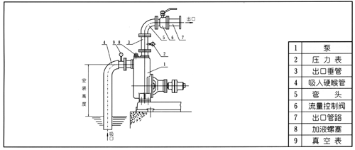 A.吸人口的安裝高度盡量不超過5米,在條件許可時,吸人口的安裝高度應(yīng)盡可能地低于油庫最低儲油面,并盡量縮短吸人管的長度,少裝彎頭,這樣有利于縮短自吸時間,提高掃艙功能。