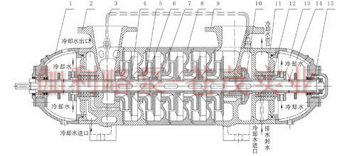 進水段、中段、導葉擋板、出水段導翼、出水段及尾蓋均為鑄鐵制成,共同形成泵的工作室。