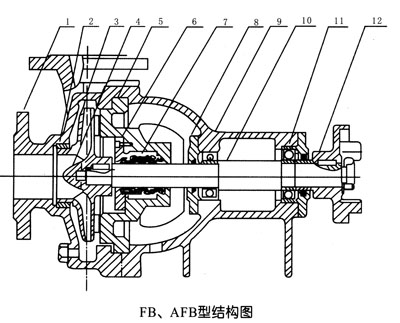 【FB、AFB型不銹鋼耐腐蝕離心泵】結(jié)構(gòu)圖: