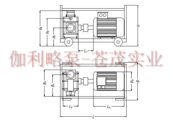 【KYB型移動式自吸滑板泵】安裝尺寸圖: