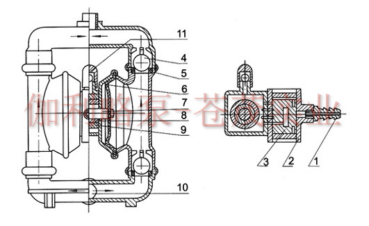 【QBY型工程塑料氣動(dòng)隔膜泵】結(jié)構(gòu)圖: