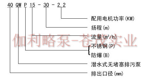 【QW(WQ)系列無堵塞潛水排污泵】型號意義: