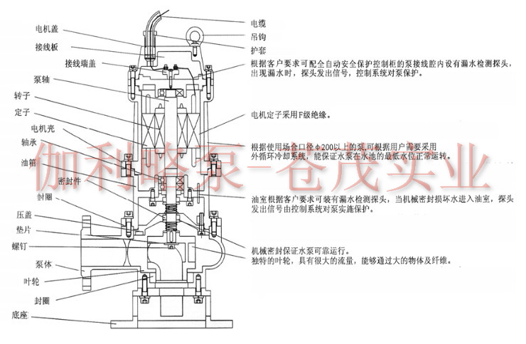 【QW(WQ)系列無堵塞潛水排污泵】結構圖: