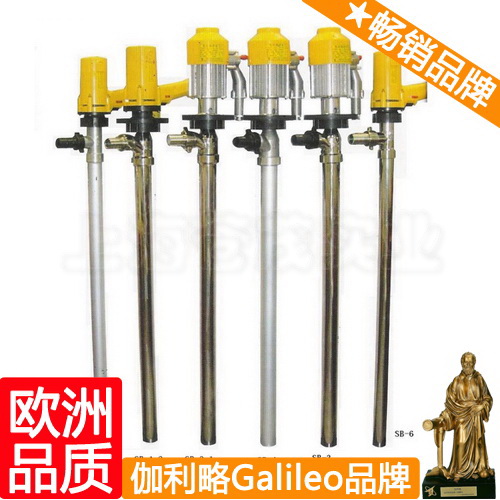 【SB型電動抽液泵┃電動油桶泵】產品簡介:SB型電動抽液泵是上海伽利略Galileo泵業有限公司引進西德優質樣機開發研制而成,各項技術指標均能達到樣機水平,并在樣機基礎上開發了不同的使用場合不同抽吸液體的系列派生產品,該系列抽液泵為輕便型管式軸流泵,具有效率高,使用、維修方便等特點。SB型油泵廣泛用于化工、石油化工、精細化工、染料化工、環保、水處理、醫藥、食品等部門抽吸不同液體。如在易燃易爆場合使用,可選用我公司生產的防爆型電動抽液泵。(SB-3型、SB-4型)使用油泵時應按CB38361-2《爆炸環境用防爆電氣設備》有關規定并正確使用防爆插頭插座。