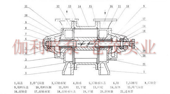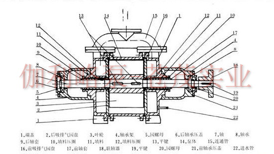 ??? 填料安裝在兩端蓋內,密封水經由端蓋中的小孔進入填料中,冷卻填料及加強密封效果。葉輪形成水環所需的補充水由供水管供給,供水管可與氣水分離器連在一起循環供水。