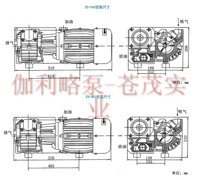 【XD型單級旋片式真空泵】安裝尺寸圖: