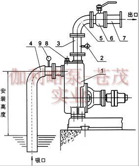 ??? 2、ZW型無堵塞自吸排污泵的出口處應先裝上一段垂管{一般為0.4~1米)和壓力表,然后再安裝出口流量控制閥門及其他管路。